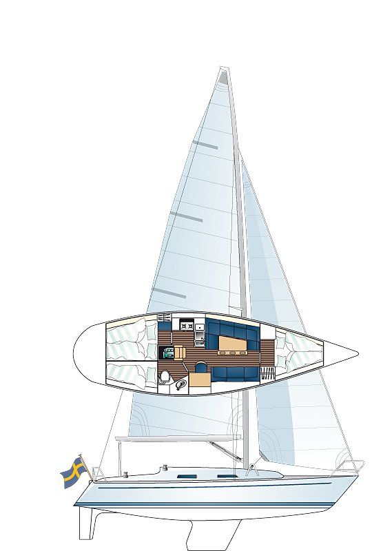 Der geräumige Salon, die große Pantry, der vollwertige Navigationsplatz und die 5 Kojen in 3 Kabinen strahlen Funktionalität genauso aus wie schwedische Gemütlichkeit.