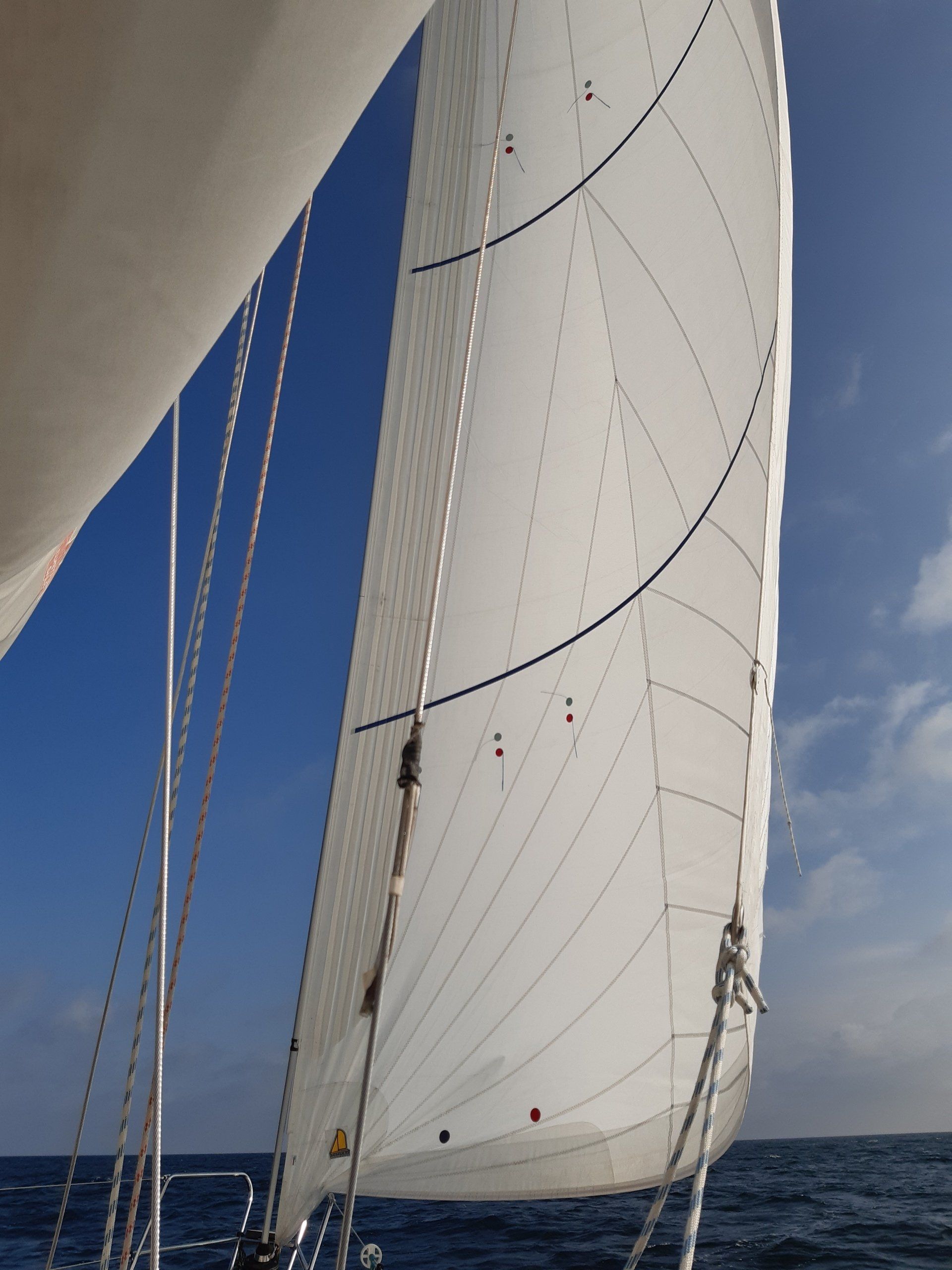 Ihr 17 Meter hohes Rigg mit doppelten Salingen, durchgelattetem neuem Großsegel (2021) mit 3 Reffs, fast neuer Genua (2020), optionalem Kutterstag mit reffbarer Schwerwetterfock und einem einfach zu fahrenden Spinnaker lässt sich mit kräftigem Achterstag, optionalen Backstagen und durchgehendem Traveller hervorragend trimmen und macht mit seinen 70 qm Segelfläche ambitionierten Regattaseglern an der Pinne bei jeder Windstärke pure Freude.